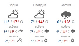 Около пладне валежите ще спрат и след обяд над по-голямата част от страната ще е предимно слънчево, с повече облаци над Северна България.