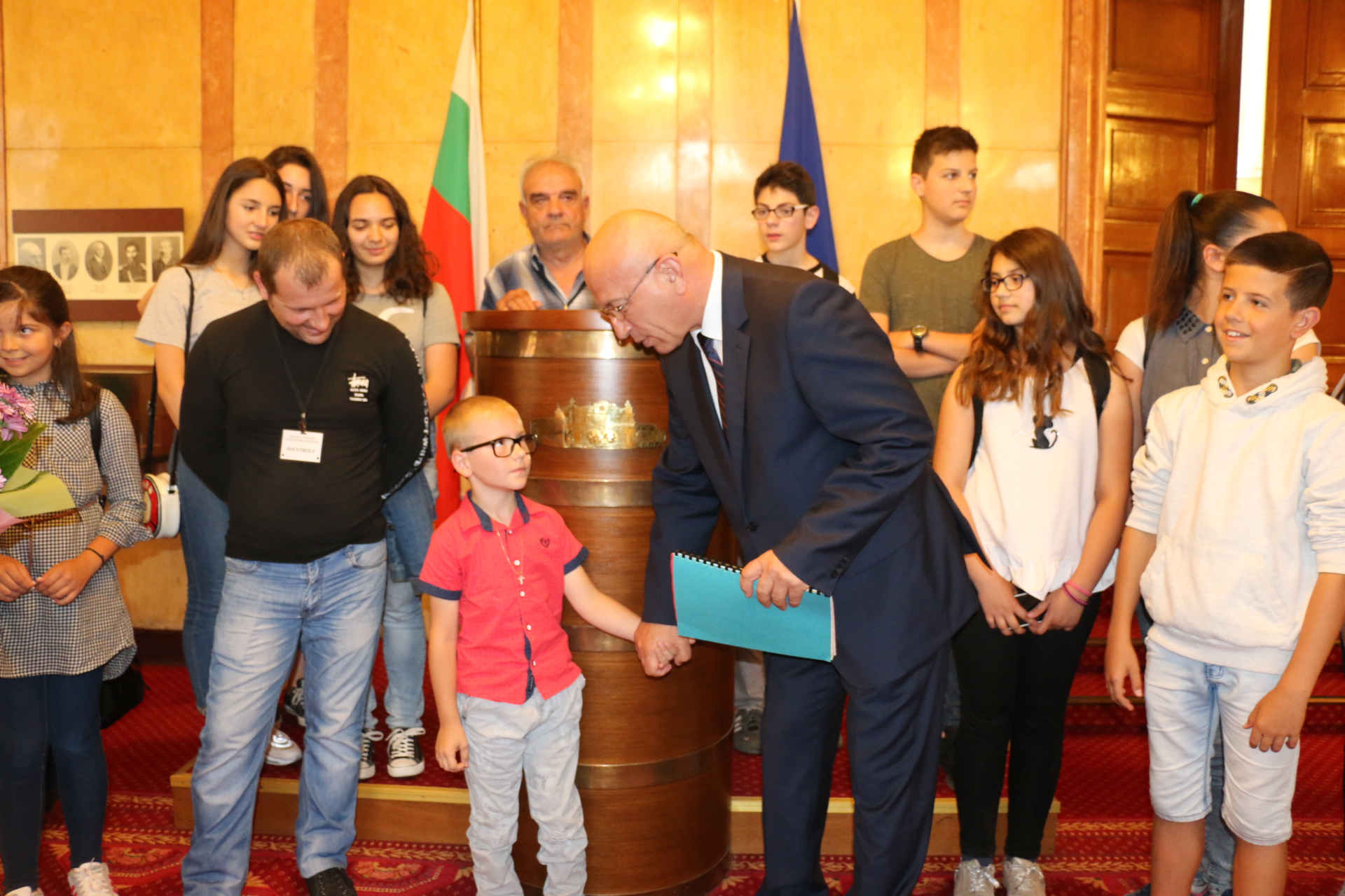 Първолакът Цветан Заров занесе в парламента специален подарък от Дупница – папка с рисунки, посветени на 140-ата годишнина от Освобождението на страната ни. Произведенията на първолаците от ОУ „Неофит Рилски” бяха подарени лично на зам.-председателя на НС Емил Христов, който ги прие с благодарност и поздрави децата за таланта. „Истинска радост е срещата с будни, млади дупничани”, каза зам.-председателят на парламента.