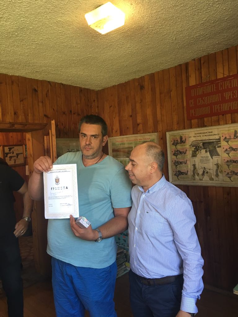 На второ място от служителите се класира Александър Ангелов от Криминална полиция – РУ Кюстендил, на трето – Ивайло Паунов от група „Контрол на пътното движението по главни пътища и автомагистрали“. Сред журналистите на второ място се класира Иван Йорданов от радио „Вокс“, а на трето – Ивайло Стоянов от тв „Запад“. Наградите на победителите бяха връчени от директора на ОДМВР – Кюстендил, старши комисар Елиан Стамболийски и от директора на РДПБЗН комисар Светослав Георгиев. За отборно представяне в Турнира по стрелба с пистолет бе отличен с грамота отборът на РУ Бобов дол.